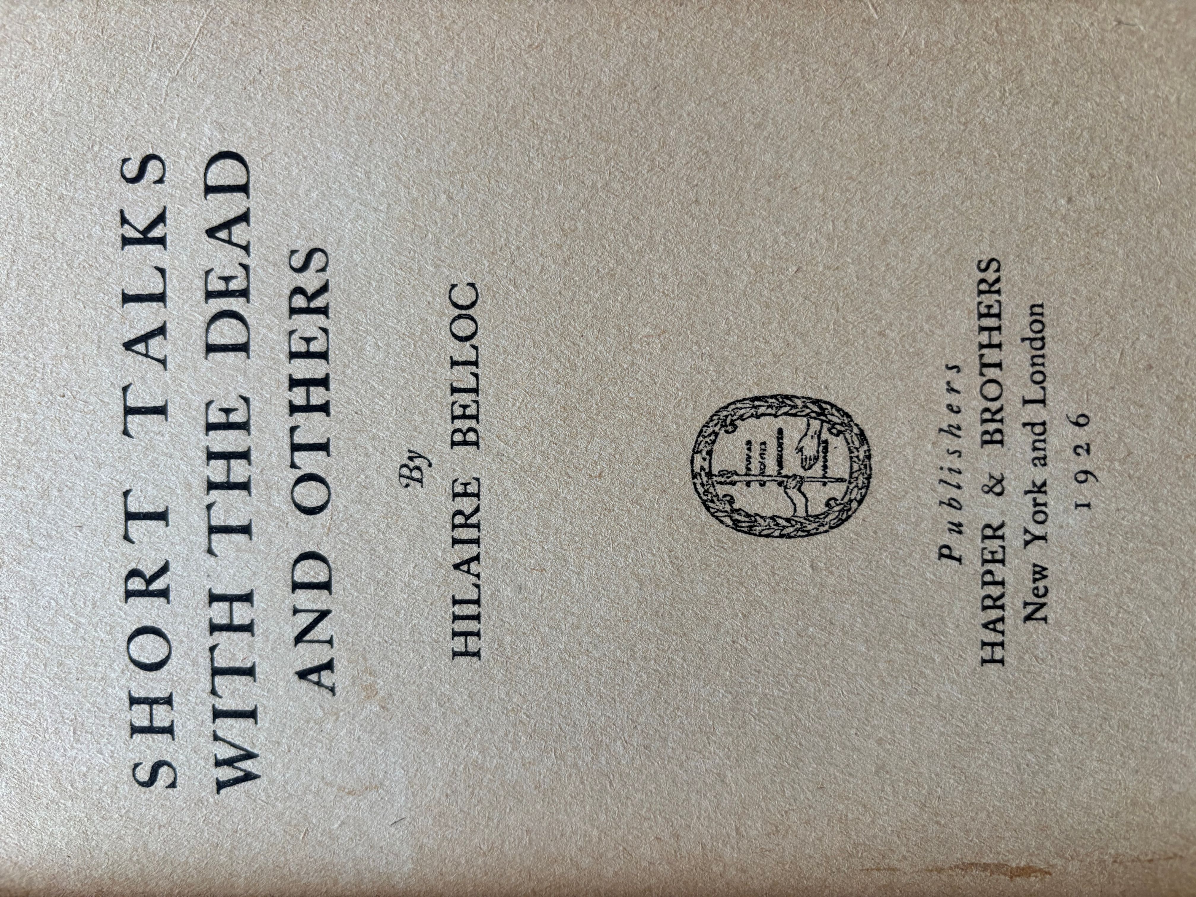 Short Talks with the Dead and Others